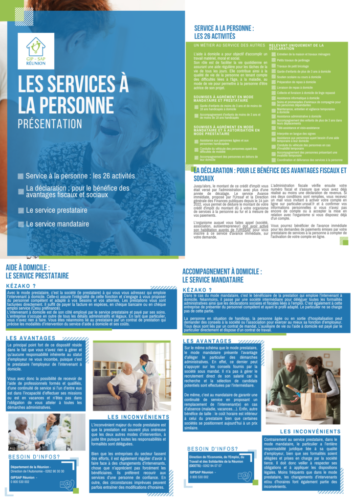 des accompagnements spécifiques (par exemple des médiations familiales, des interventions à domicile, un accompagnement administratif pour monter les dossiers, etc.) proposés par certains acteurs comme le GIP SAP, l’Equipe Mobile de Gériatrie, la MAIA, la PTA, l’association MND&Co, l’association France Alzheimer Réunion, le groupe CRC…)